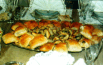 The bourek of Algeria are made with ouarka, a very thin wheat pastry. The filling is usually beef flavoured with herbs and spices. These are then shaped into spring roll-like cigars and shallow fried in oil for a few minutes until crispy. The Sephardic term for the bourek is betzel.
