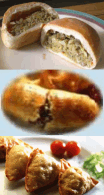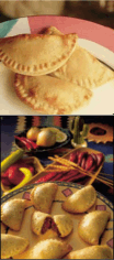 The Mexican empanada, like its Spanish original, is a pastry crust or meat pie with a filling of beef and vegetables, ham and cheese, or other stuff usually cooked in an oven, or sometimes fried. It's a popular snack food in Mexico and are most commonly a dessert or breakfast item. The fillings are usually sweet and include pumpkin, yams, sweet potato, and cream, as well as a wide variety of fruit fillings.