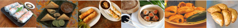 There are no close relatives of the samosa in Cambodia. However, the Cambodian kitchen has excellent spring rolls which are either served cold or deep-fried. The filling includes shrimp, shredded cucumber, carrots, bean sprouts and sweet basil.