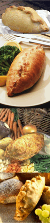 The British pasty is defined as an individual savoury pastry pie made without a dish on a baking sheet. Cornish pasties originated as portable lunches for tin miners, fishermen and farmers to take to work. These complete-meal pasties were popular in other parts of the country too.